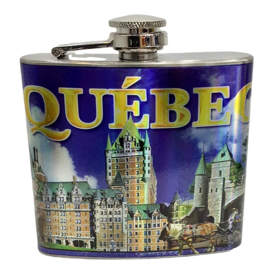 Québec Skyline Scene Stainless Steel Hip Flask with Funnel 5 oz, Solid Flasks for Liquor Whiskey Gift Drinking Flasks Flask 5 oz for Men