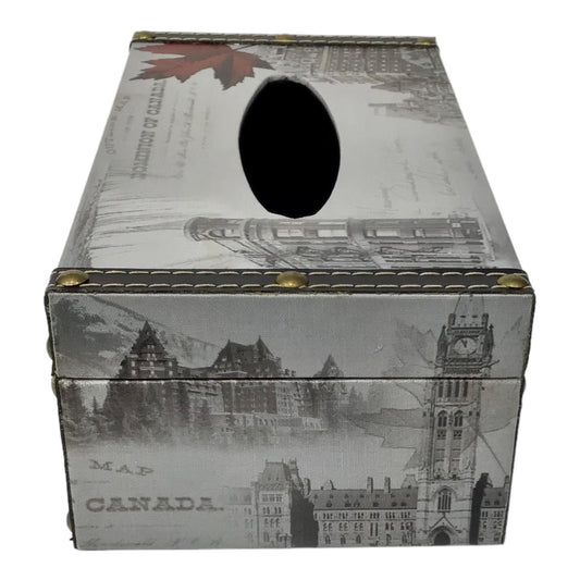 Wood Tissue Paper Box - Canada Vintage Scenic Print