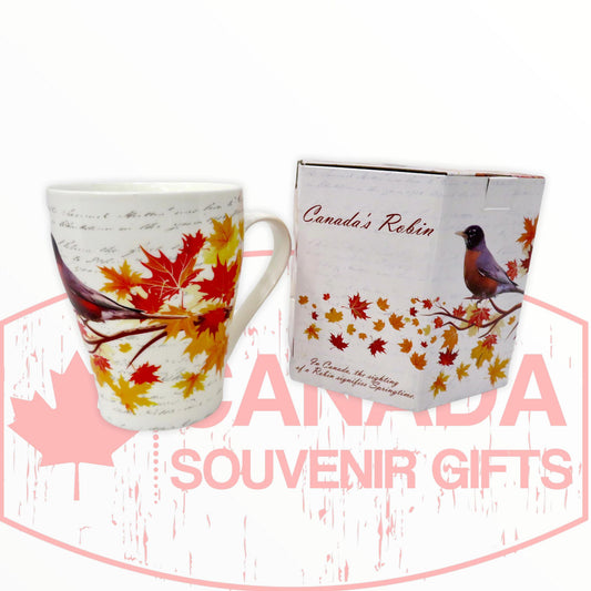 Coffee Mug - Beautiful Canada's Robin Bird Perched on the Maple Leaf Tree Tea Cup
