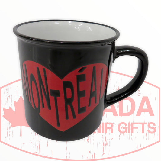 Montreal Red Heart Coffee Cup w/ Black Background Themed Coffee Mug