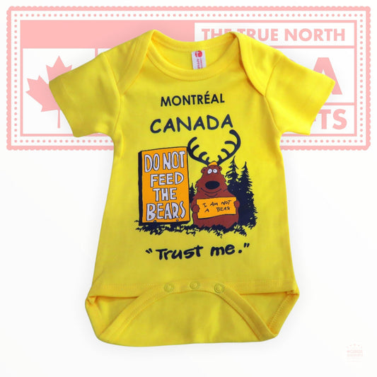 Montreal TRUST ME Moose Onesie, Yellow 3M - 18M Onesie, Canadian Onesie, Bodysuit, Baby Shower Gift, Vintage, Unisex Onesie