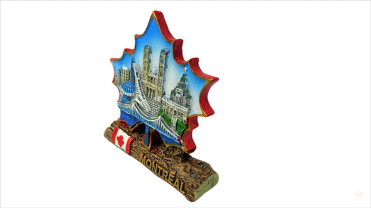 Montreal Vintage Maple Leaf Shaped with Wood Log Shaped Stand and Canada Flag Display Decoration Ceramic