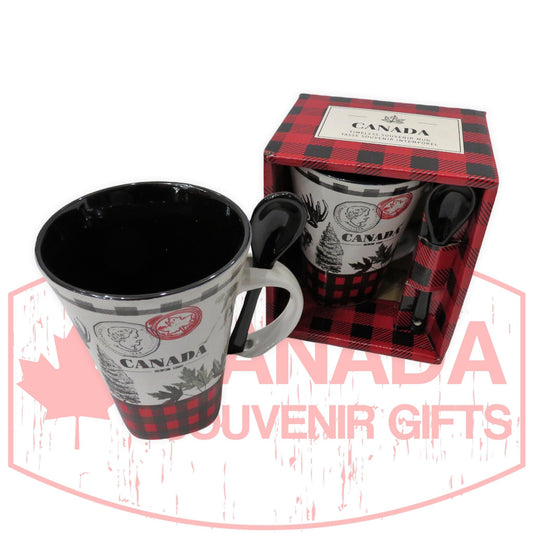 Canada Ceramic Buffalo Plaid Coffee Mug with Black Spoon