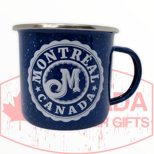 Coffee Mug – Canada Retro Blue or White Tin “Montreal Canada Circle Themed” Tea Cup