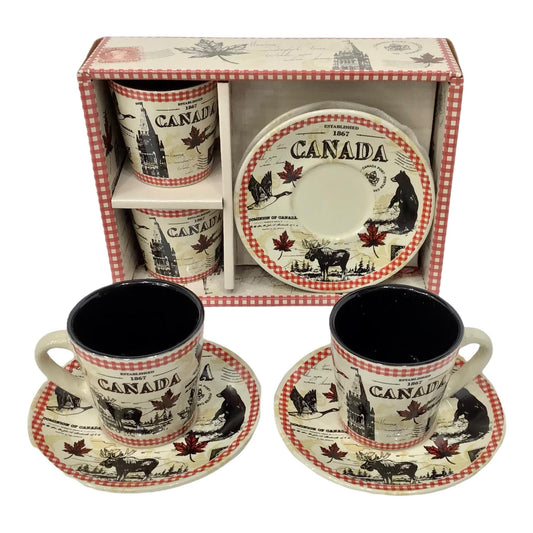 Canada Vintage Coffee Cup & Saucer Gift Set with Beautiful Animal Print