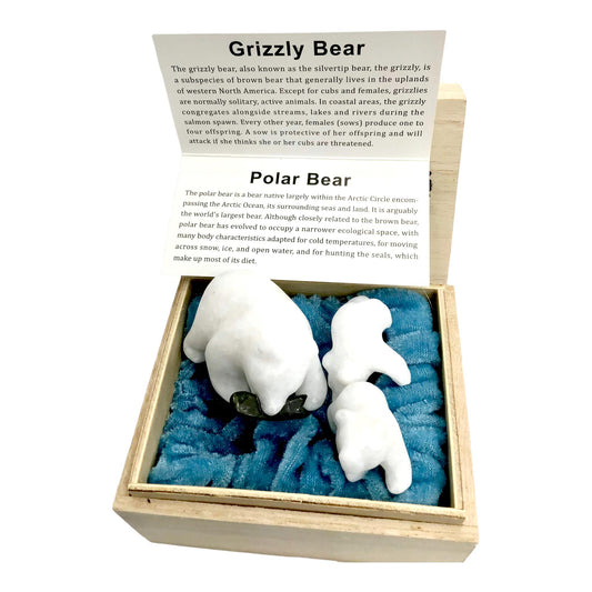 Grizzly Bear Family Set Hand Carved Star Marble & Green Jade Stone