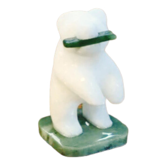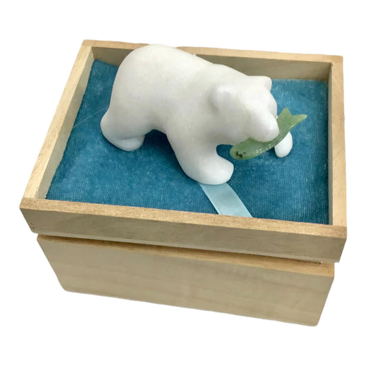 Star Marble Bear Standing With Fish, 2" - Marble Bear With Jade Fish - Star Marble Carvings - Marble Bear 3" With Jade Fish Gift Boxed - Canadian Souvenir