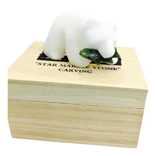 Star Marble Carvings - Marble Bear 3" with Jade FIsh Gift Boxed