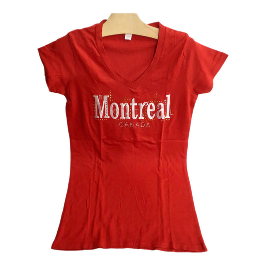 Red Montreal Rhinestone Women’s V-Neck T-Shirt