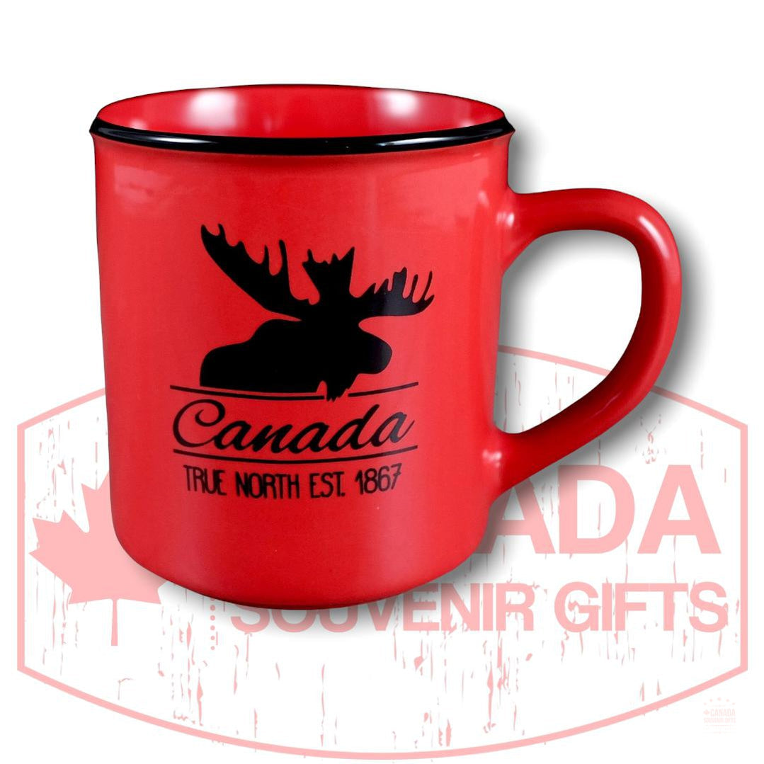 Coffee Cup - Canada Moose Red Tea Cup - The True North EST. 1867 Ceramic Souvenir Mug