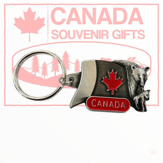 Keychain - Canada Maple Leaf in Red with Bear and Baby Bear - Moose - Totem Pole with Inukshuk - 3 different Variation Option
