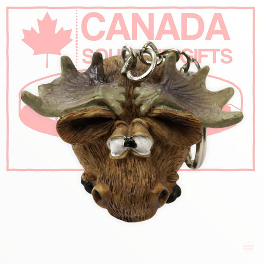 Moose Head 3D Themed Bronze Tone Keychain - Canadian Souvenir Key Ring Metal Diecast