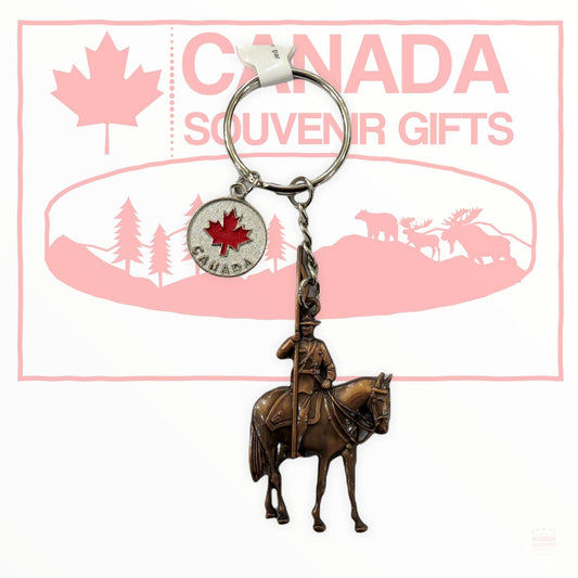 Canada Keychain - Bronze RCMP on the Horse with Country Flag Porte Cle