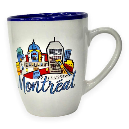 Elegant Vintage Painting: The white and blue ceramic design is adorned with a vintage painting of Montreal's iconic skyline. From the majestic architecture to the St. Lawrence River, this mug beautifully illustrates the essence of the city.