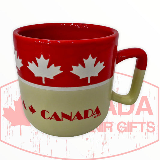 14 oz Large Mug Ceramic Coffee Tea Glass Cup Maple Leaf Canada (Red/Cream)