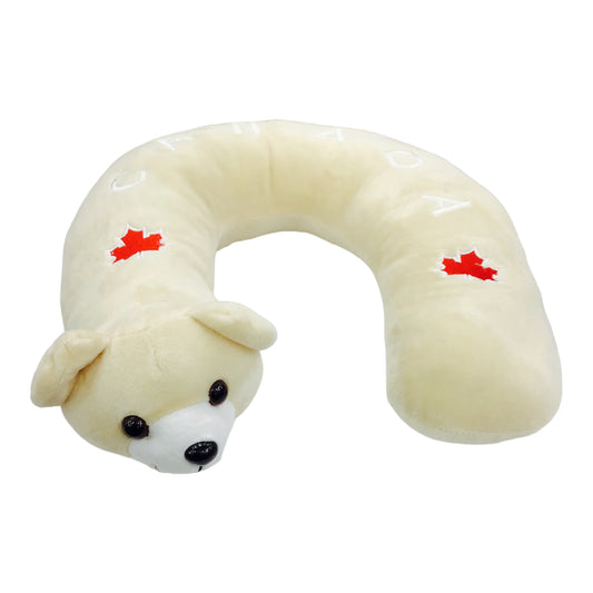 Canadian Polar Bear Plush Travel Neck Pillow - Canada Themed Design Double Headed White Bear