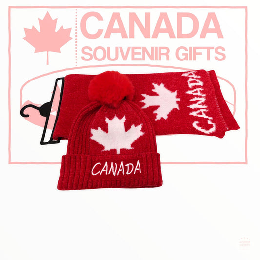 Super Soft Canada Winter Scarf and Toque - Red with Canada Maple Leaf in White Adults Unisex