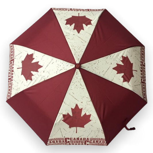 Vintage Canada Maple Leaf Umbrella Midnight Red