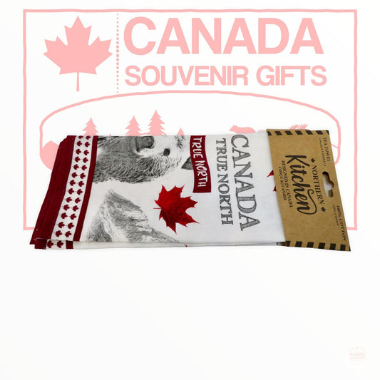 Vintage Tea Towel Canada True North - Bear and Maple Leaf Themed Designed in Canada