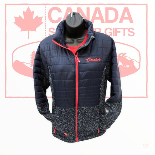 Winter Jacket Ladies Mixture of Navy and Charcoal - Canada and Maple Leaf Themed Embroidery