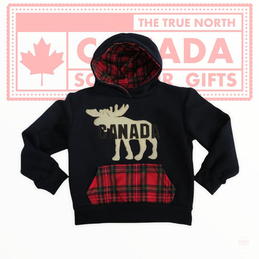 Canadian-Made Moose Hoodie with Buffalo Plaid Pocket