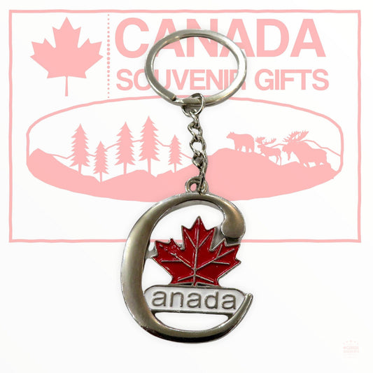 Keychain - Canada C Shaped with Maple Leaf Key Holder - Metal Keyring