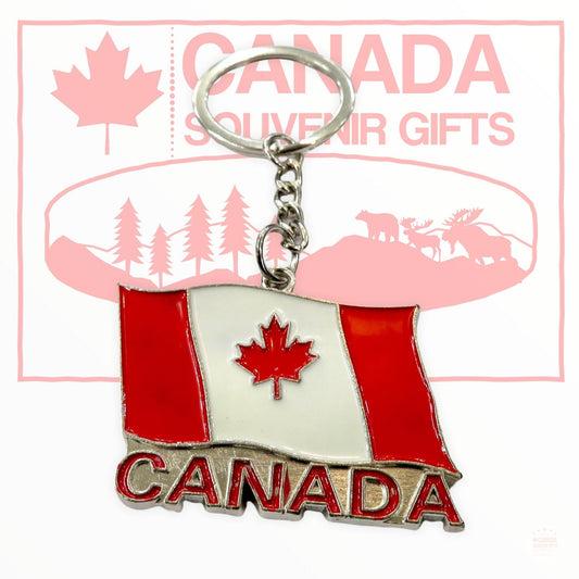 Keychain - Canada Country Waving Flag Shaped Porte-Cle - Metal Diecast