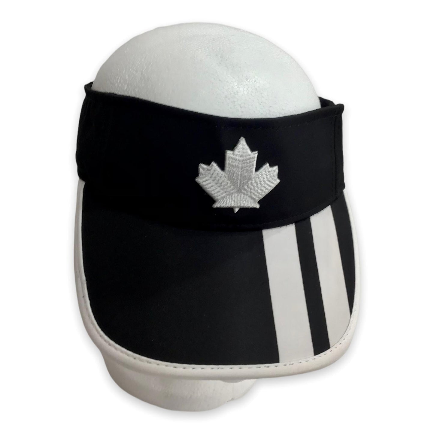 Stay cool and stylish with our Canada Black Sun Visor Cap. This women's golf visor combines functionality with fashion, featuring an adjustable design and an empty top for breathability. Showcase your Canadian pride on the golf course or during any outdoor activity with this sleek and versatile visor hat.
