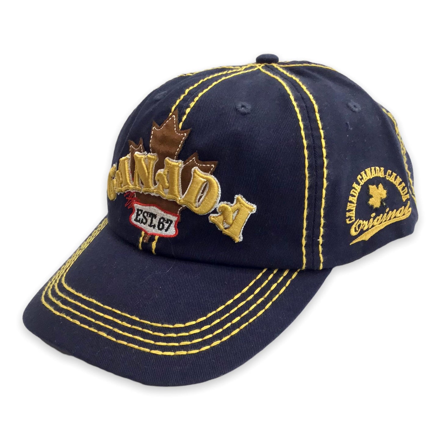 Baseball Cap Canada Yellow Embroidery on Navy Adjustable Hat