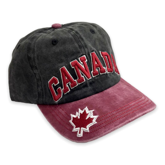 Casquette de baseball Canada feuille d'érable bordeaux sur noir broderie chapeau réglable