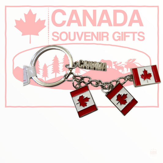 Porte-clés - Porte-clés agitant 3 drapeaux canadiens - Porte-clés en métal moulé sous pression de Montréal