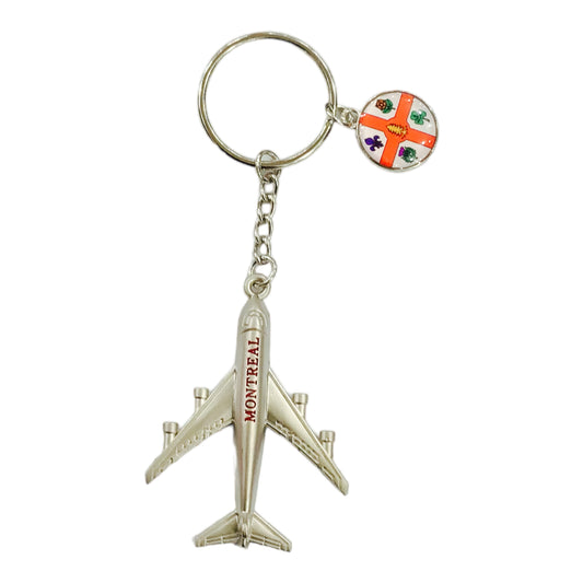 Porte-clés en métal avec breloque drapeau d'avion de Montréal Canada