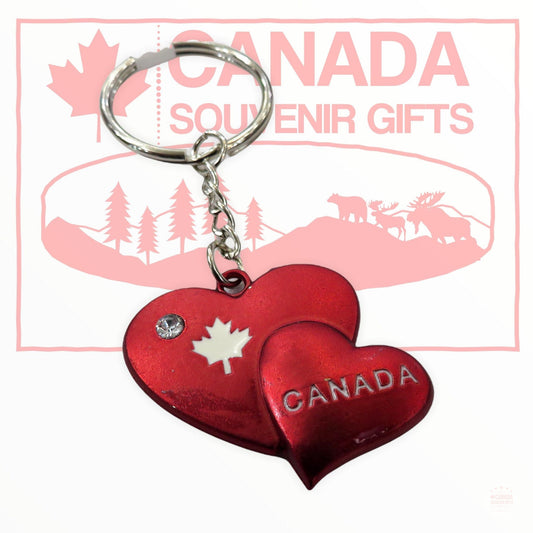 Porte-clés canadien - Canada Double coeur rouge clouté avec porte-clés feuille d'érable