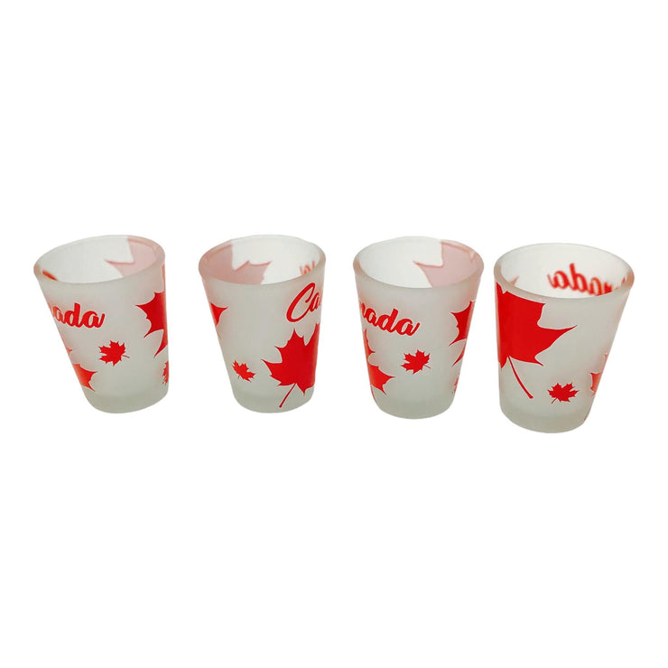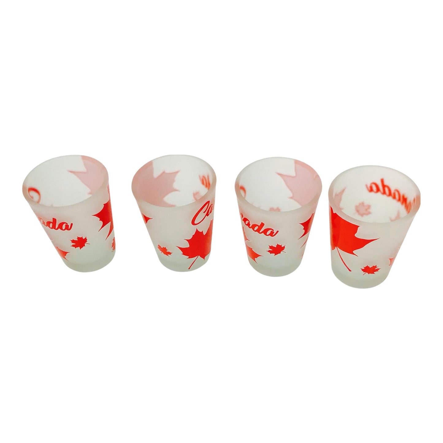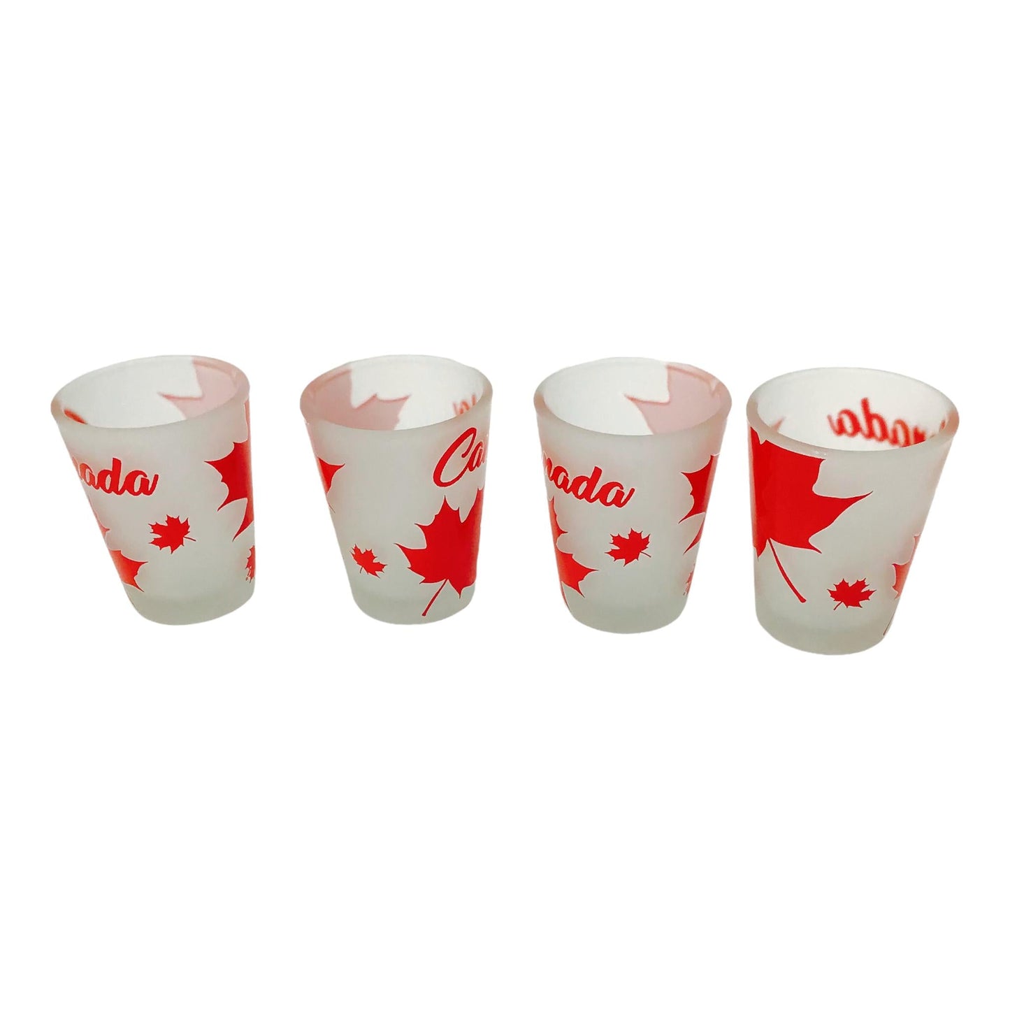 Immerse yourself in the vibrant spirit of Canada and raise a toast to its enduring legacy with our exquisite set of 4 Canada Red Maple Leaf Frosted Shot Glasses. This meticulously crafted set of shot glasses features a captivating design showcasing a bold maple leaf, a timeless symbol of the country's resilience, its diversity, and its unwavering connection to its unique identity.