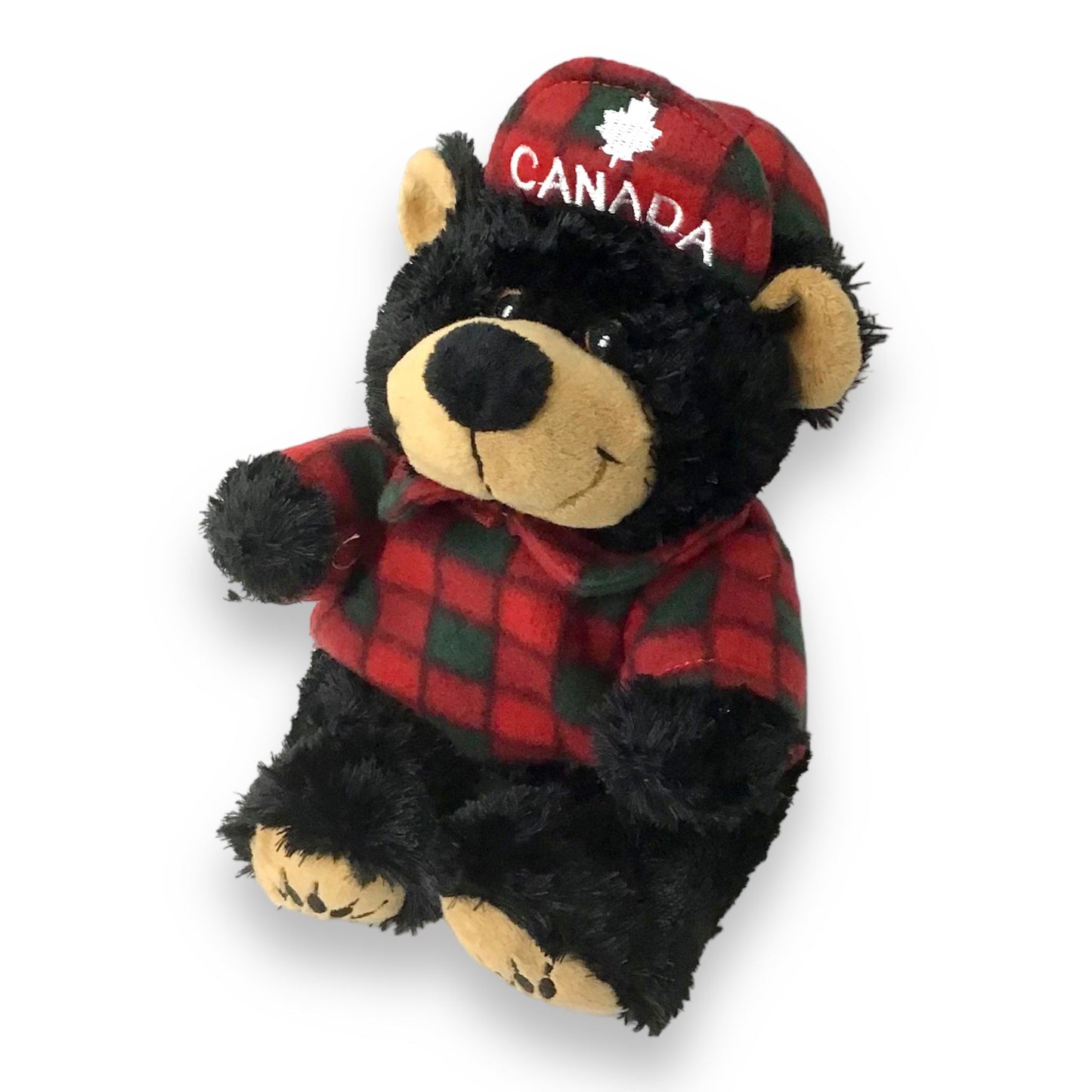 Dressed in a charming plaid red and green hat and sweater, featuring an intricately embroidered Canada Maple π, this Teddy Bear brings a touch of seasonal cheer to your home π. Its plush black fur is irresistibly soft, inviting you to squeeze, cuddle, and cherish every moment.
