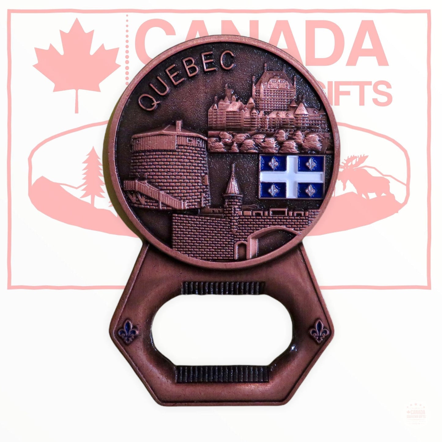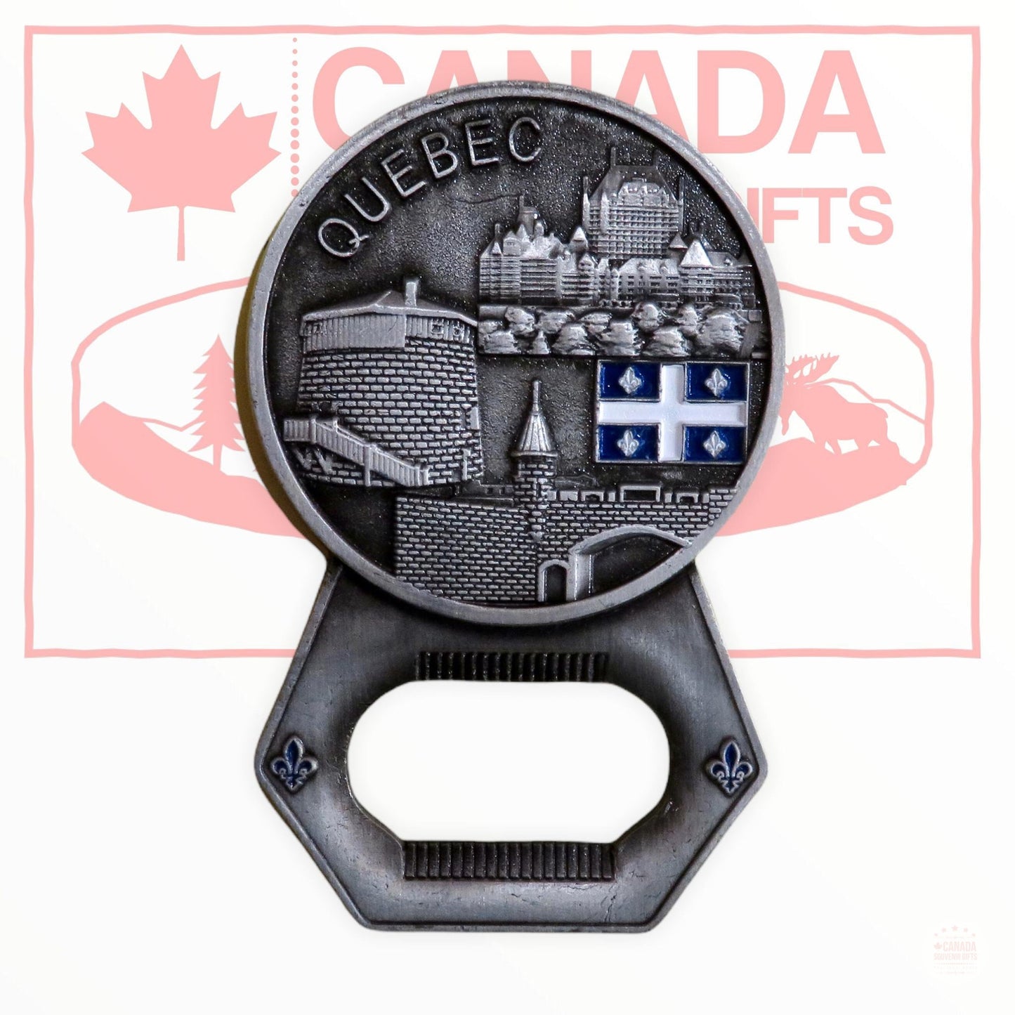 Bottle Opener - Quebec Vintage Fridge Magnet with Quebec Flag