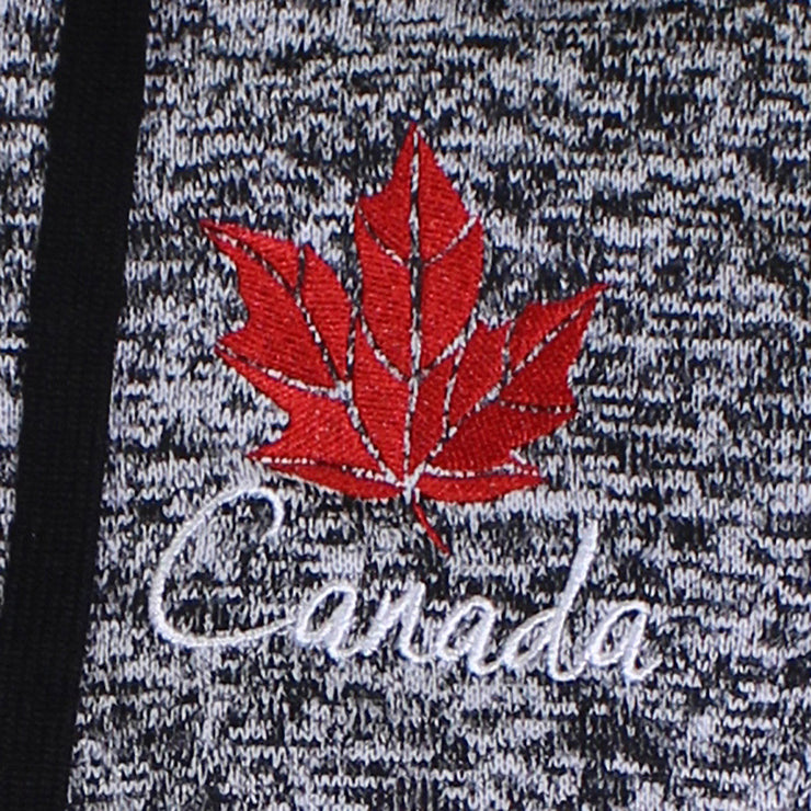 Add a touch of sophistication and Canadian pride to your wardrobe with our Ladies Salt & Pepper Maple Leaf Zip Jacket. Experience premium quality and style in one exquisite garment.