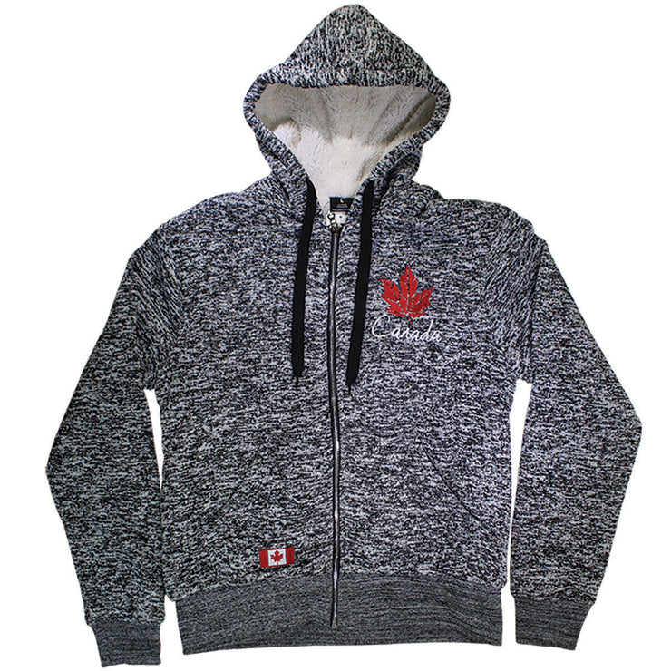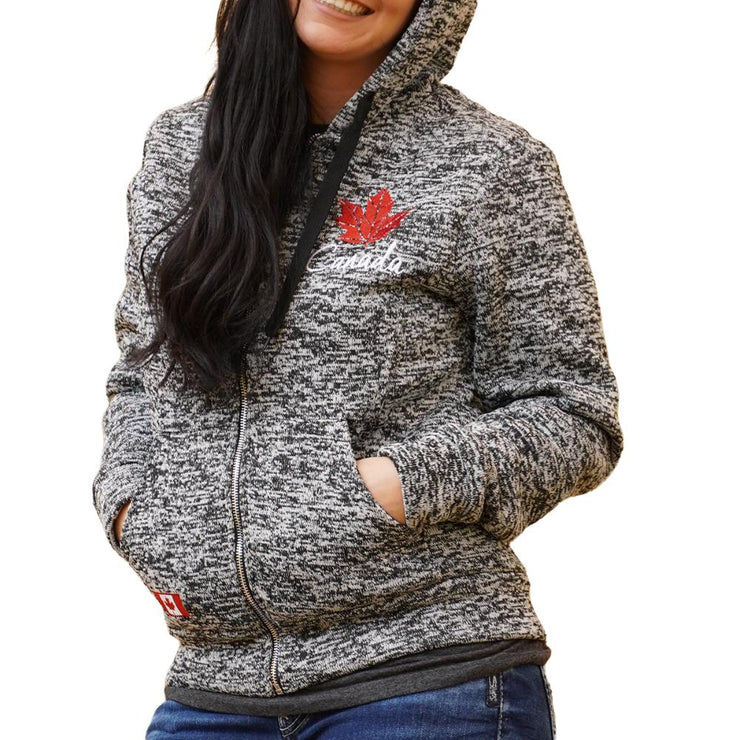 Premium Ladies Fashion: Embrace premium ladies fashion with this Salt & Pepper Maple Leaf Zip Jacket—a symbol of style and Canadian heritage.