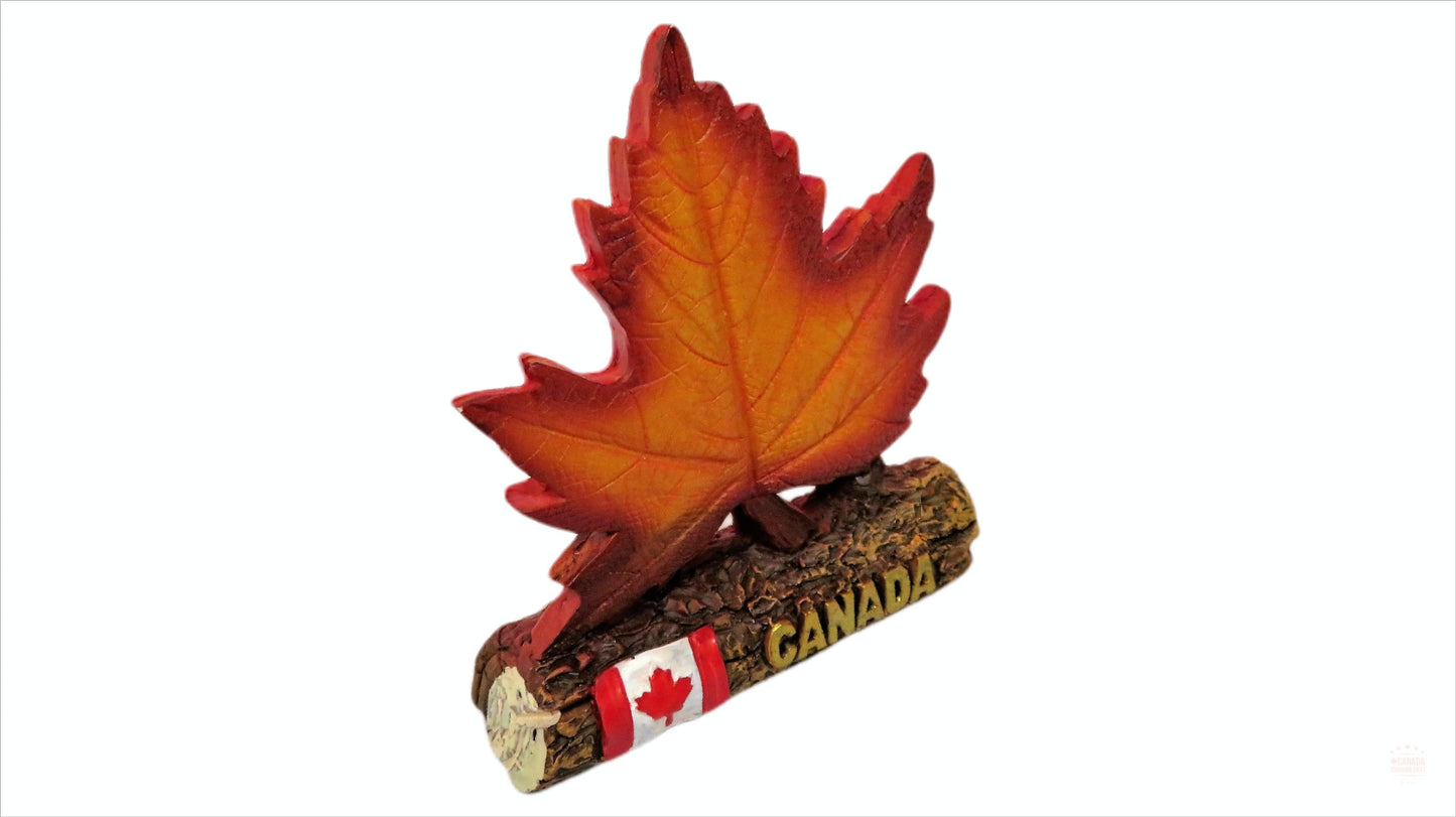 An Elegant and High Quality 3 inches Decoration Canada Flag Country Souvenir Canadian Maple Leaf 3D on the Wood Log Ceramic Souvenir Gift Designed in Canada