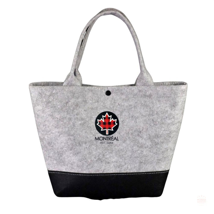 LADIES MONTREAL BAG LIGHT GRAY FELT 14"x10"x5" MAPLE LEAF BUFFALO PLAID LOGO. AN ELEGANT CANADIAN SOUVENIR GIFT FOR A BEAUTIFUL MS. MRS