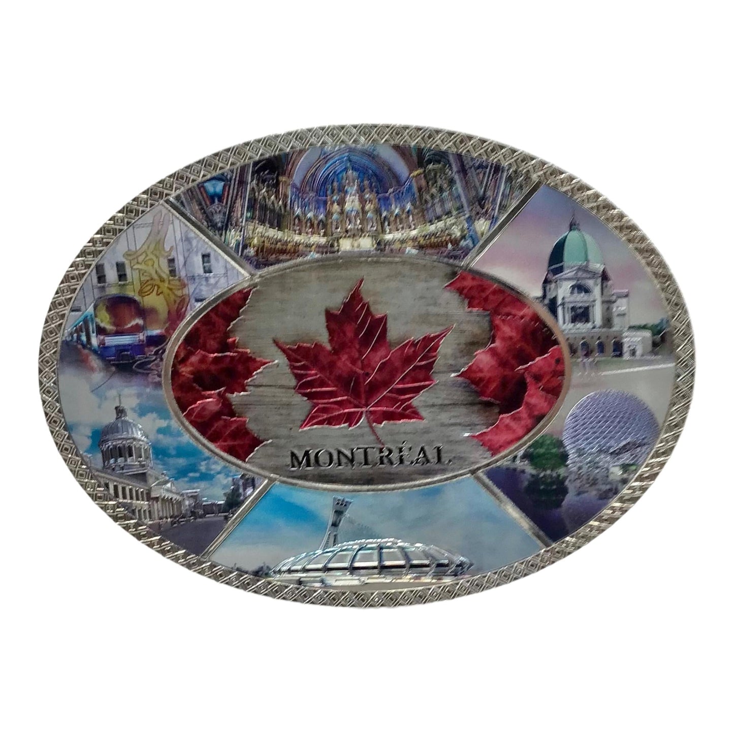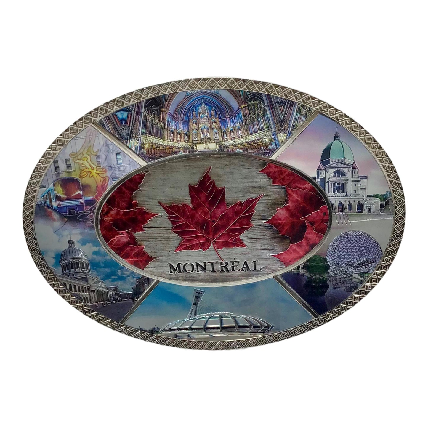 The Montreal Scenic Souvenir Tin Plate Gift is a captivating piece that beautifully captures the essence and charm of Montreal. Measuring 7.5" by 5.5" and oval-shaped, this tin plate showcases a scenic view of Montreal's unique landmarks and natural beauty. Whether you're a collector or want to bring a touch of Montreal into your home, this tin plate is a delightful gift.