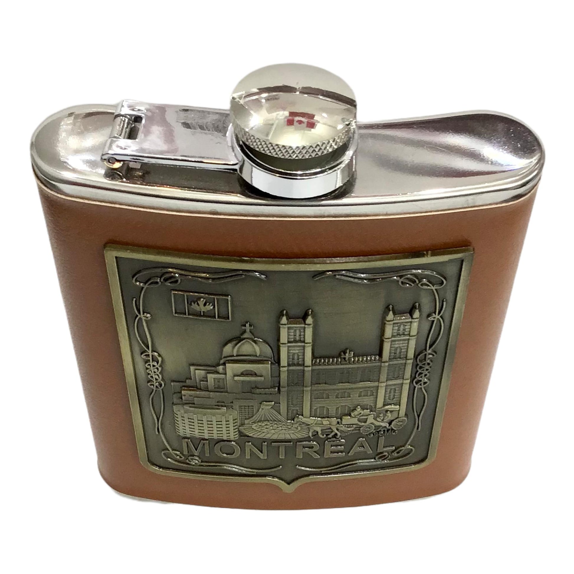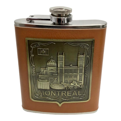 Embrace the spirit of timeless sophistication with our Montreal Vintage Hip Flask. This 7 oz flask, crafted from food-grade 18/8 stainless steel, features a distinguished brown leather cover that exudes vintage charm. Adorned with Montreal's iconic elements, this flask is designed for discreetly enjoying your favorite whiskey, rum, or vodka. The set includes a convenient funnel, making it an ideal gift for the modern gentleman who appreciates a touch of elegance with his spirits.