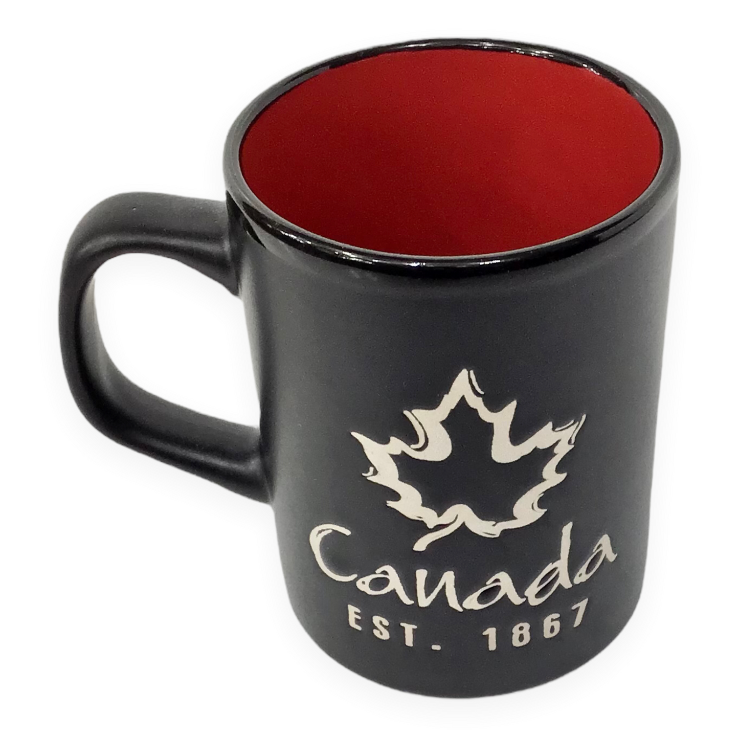 Elevate your coffee or tea time with the Black and Red Canada Maple Leaf Engraved Mug. It's more than a coffee cup; it's a statement of Canadian pride.