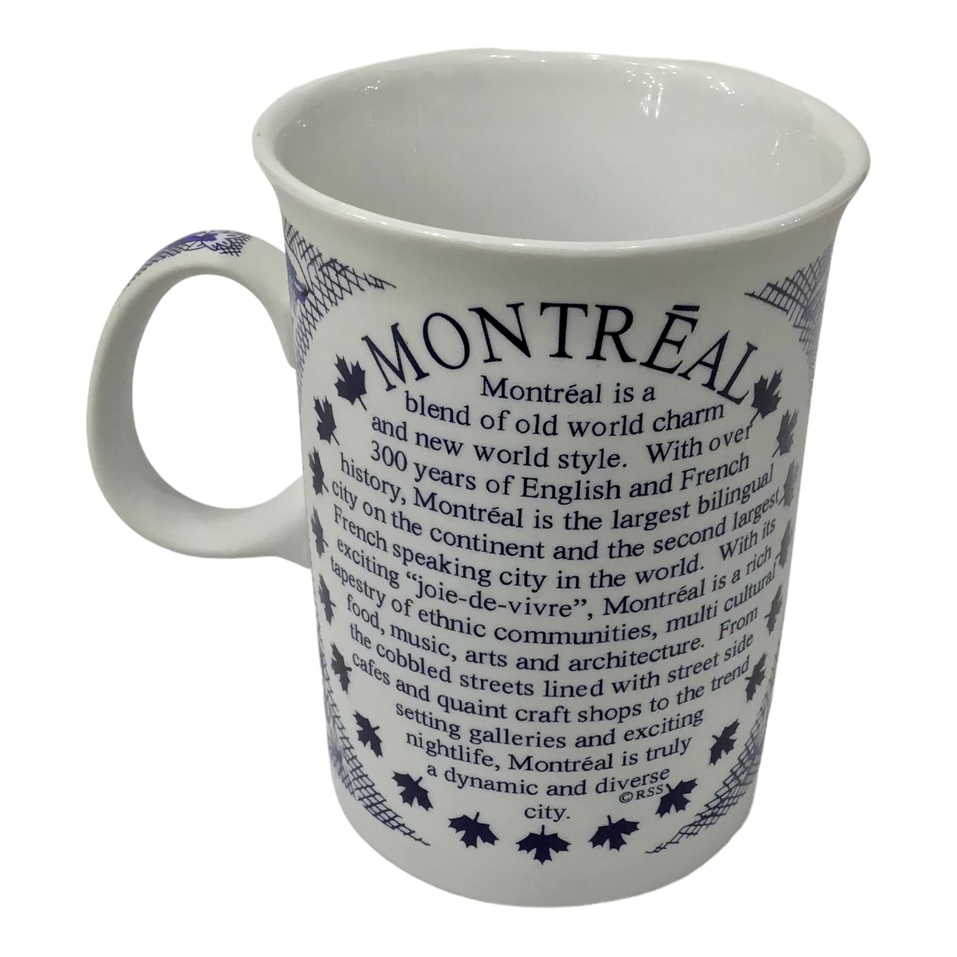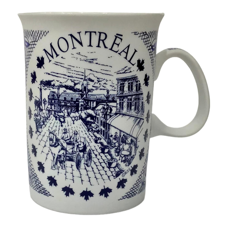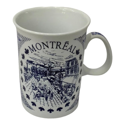 Mug Montreal Scenic Vintage Print W/ History Text Tea Cup White And Blue