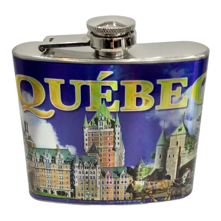 Québec Skyline Scene: The flask is adorned with a detailed depiction of the Québec skyline, offering a visual tribute to the charm of the city.