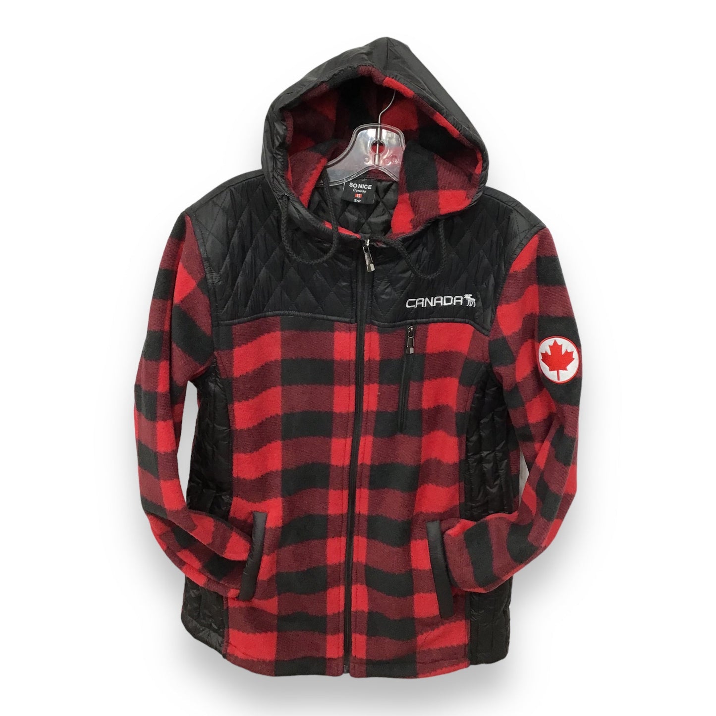 The jacket also proudly displays a Canadian emblem, allowing you to showcase your love for Canada. Whether you’re exploring the great outdoors or enjoying a casual day out, the Red Buffalo Plaid Full-Zip Canada Jacket is a versatile addition to your wardrobe. Experience the perfect combination of functionality and fashion with this quintessentially Canadian jacket.